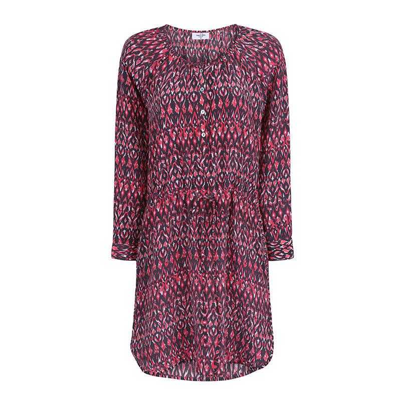 Mini dress with a draw string waist.