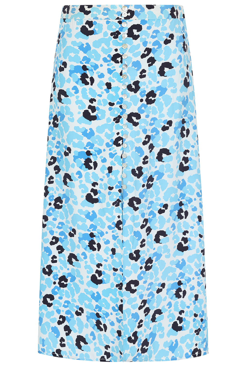 Cut to a classic, floaty A-line shape, the silky viscose Moulton skirt has a figure-skimming fit and falls to a midi length, whilst the slit through the front allows for easy movement. Finished with beautiful, shimmering mother of pearl buttons.