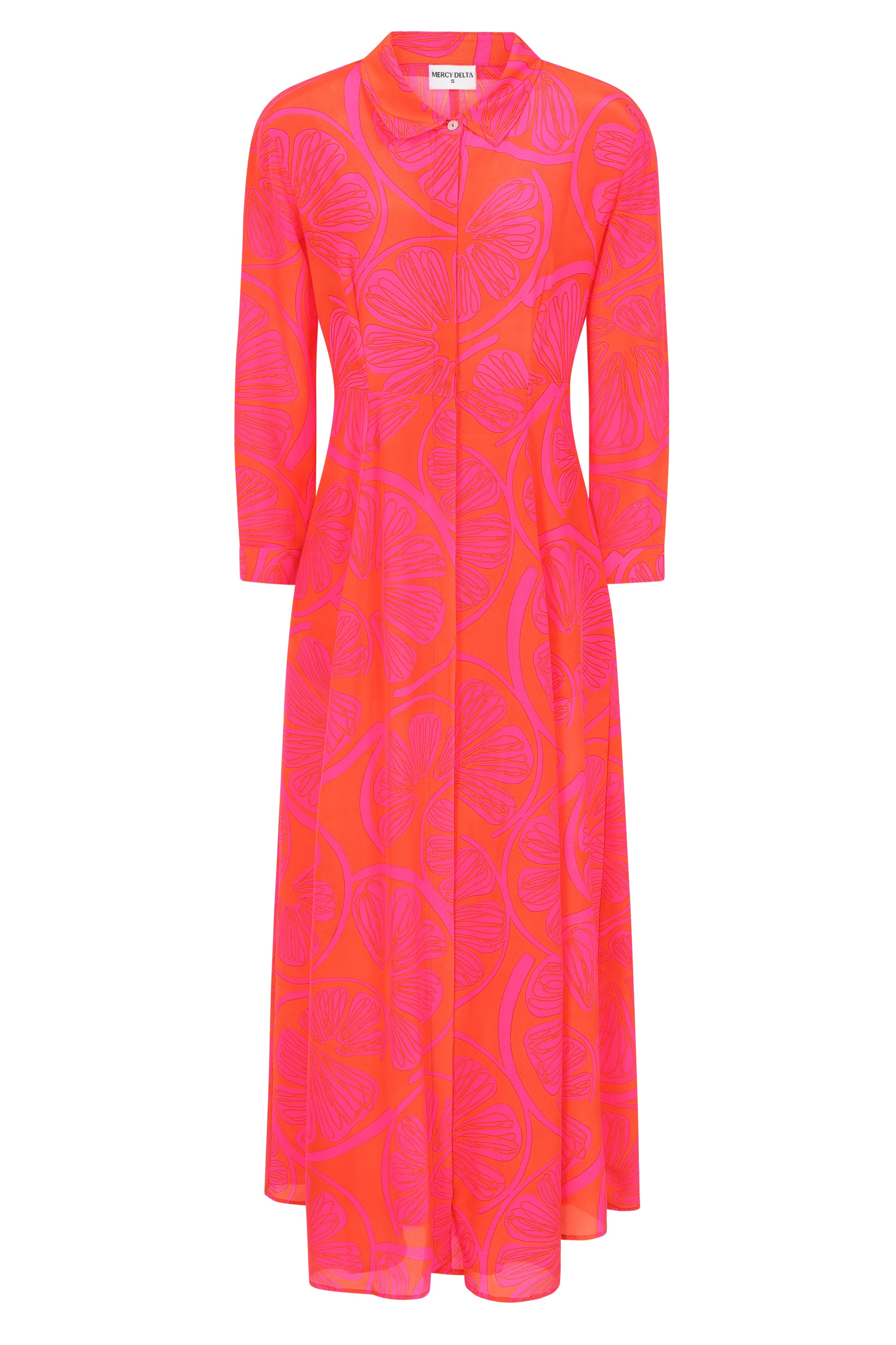 The Rosedene Dress is a timeless collared shirt dress designed for effortless style and versatility. Featuring a flattering empire shape, this maxi-length dress drapes beautifully, creating an elegant yet relaxed silhouette. The 3/4 length sleeves and button-down front add classic shirt dress detailing, while the side pockets provide a practical touch.