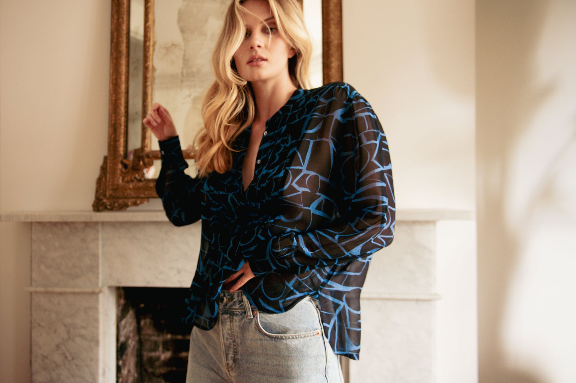 Made from a beautifully soft, semi-sheer silk georgette, our Rufford blouse is a stunning shape for a night out with friends. Pair with black jeans and heels to add a touch of elegance. This looks equally good with a lighter denim and trainers for a more casual look.