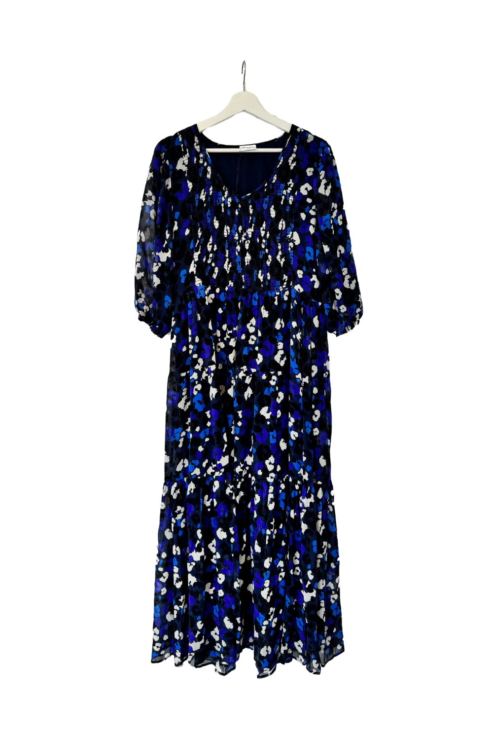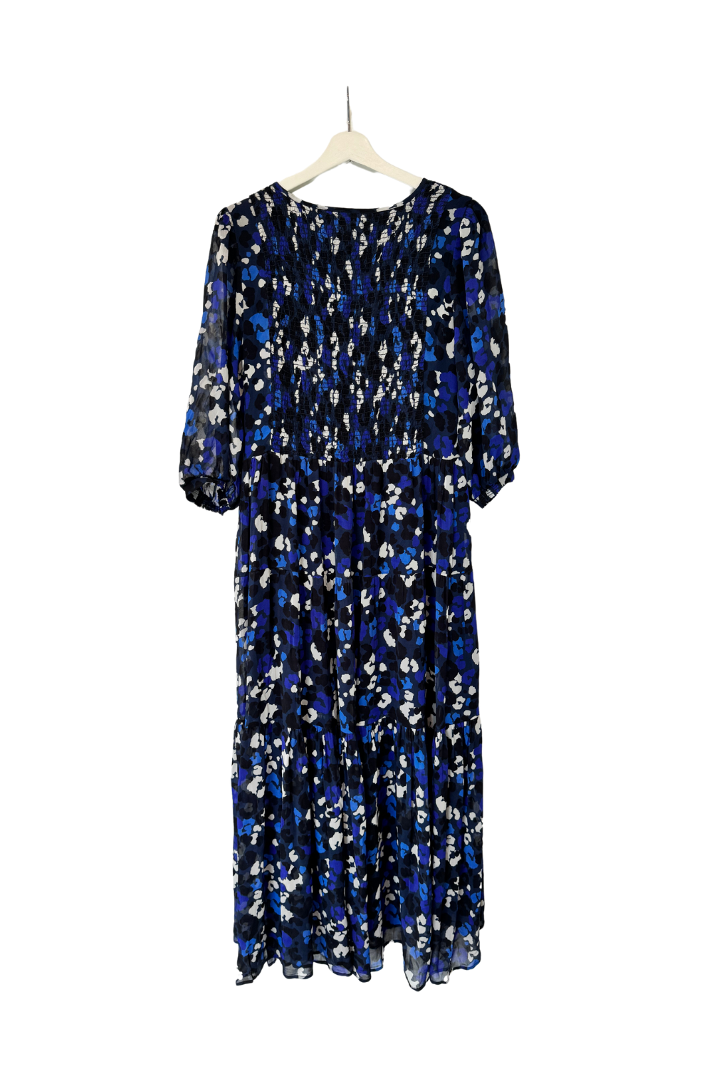 Fit details: A loose fitting dress with a tier design skirt, v neck line with 3/4 length sleeves and short slit at the centre front.