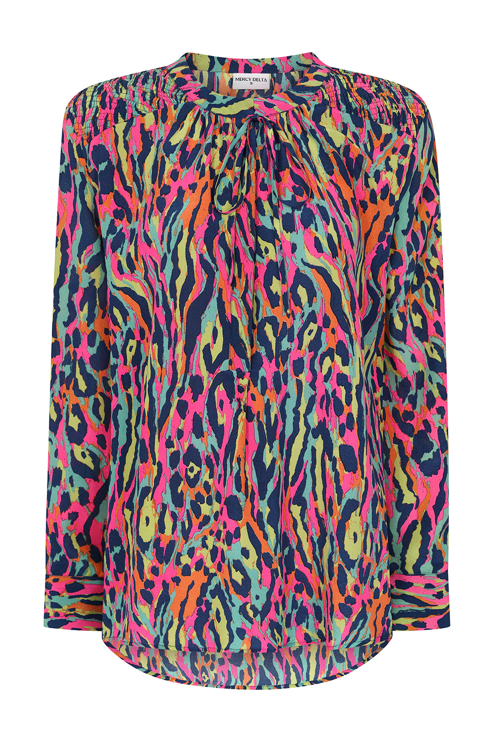 This loose fitting boho blouse is perfect for an everyday look. Style the neck ties into a delicate pussy-bow or wear open. Crafted with 100% silk, it looks great tucked into jeans or over hips.