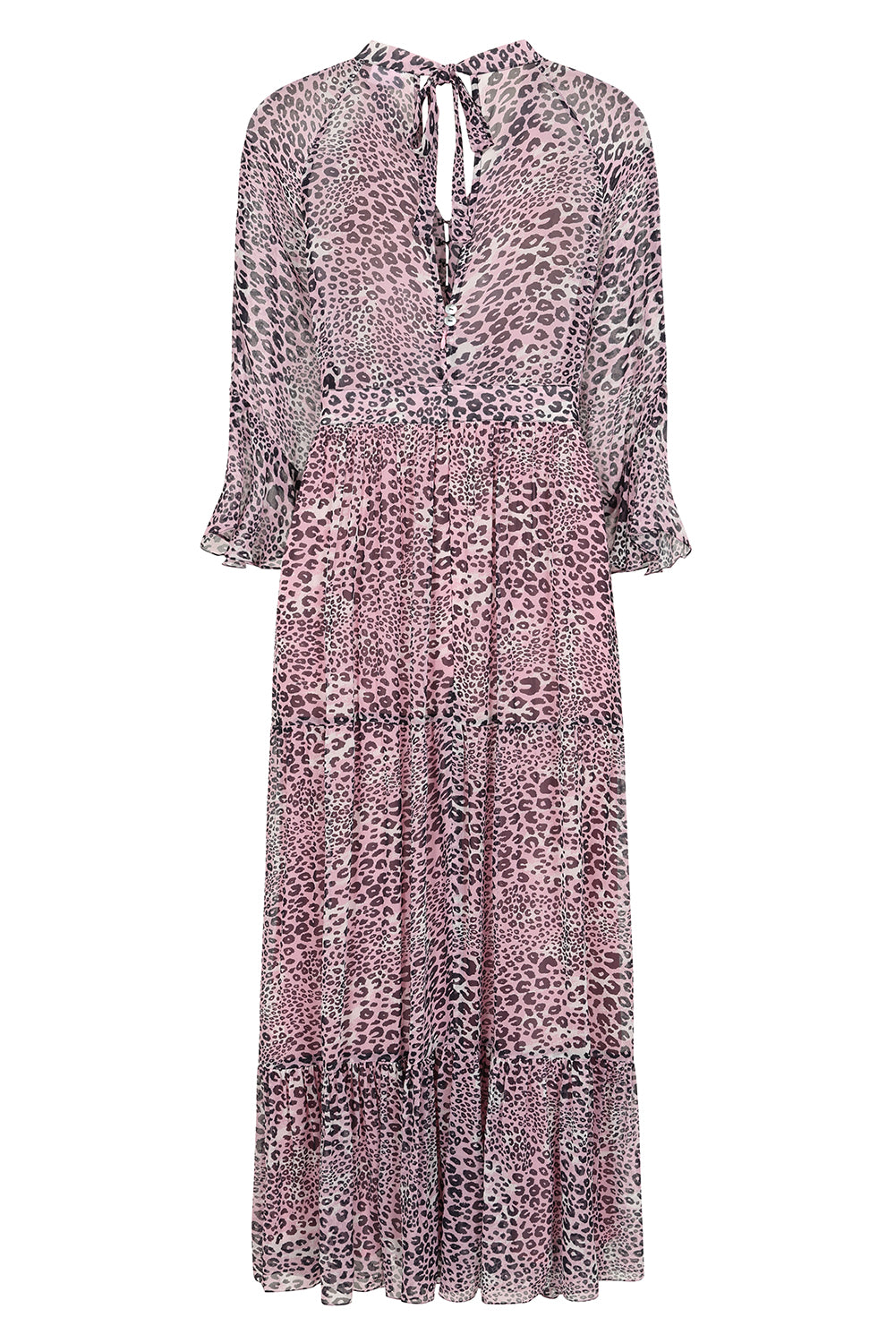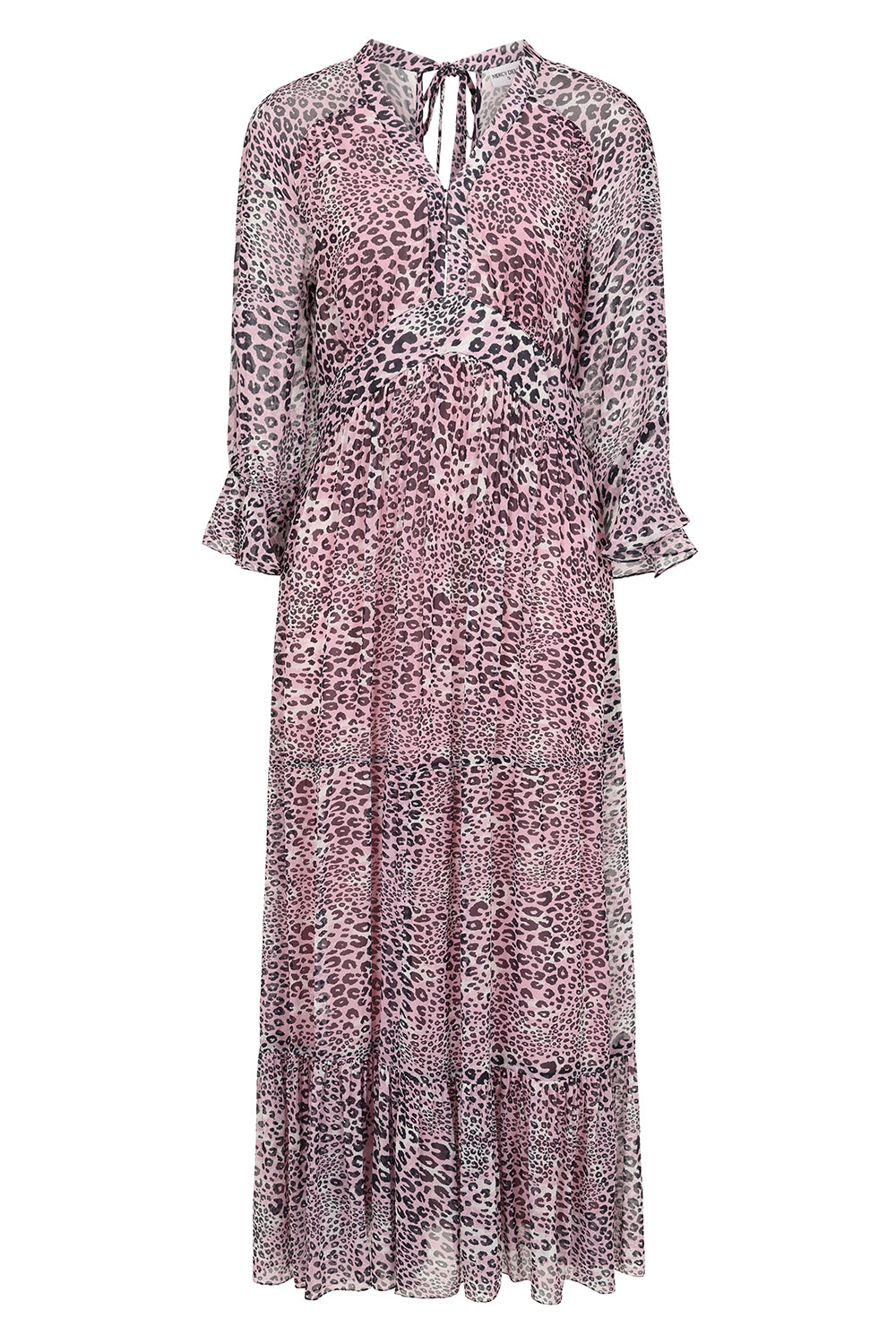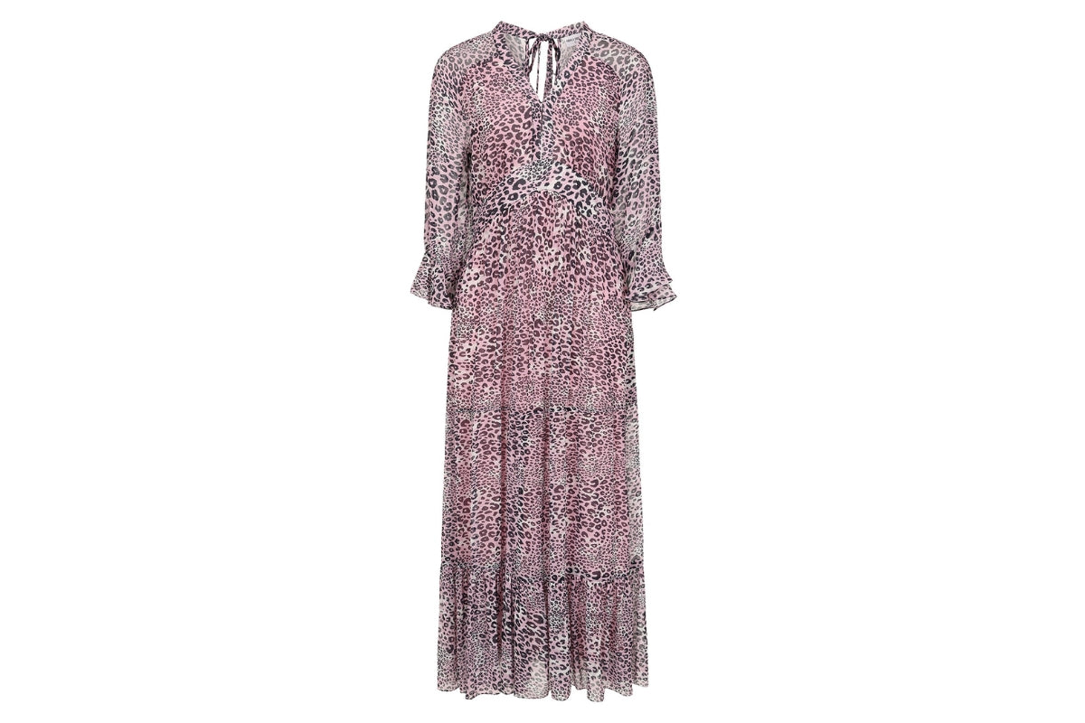 Elevate your wardrobe with this sophisticated maxi dress, designed for both style and versatility. The flattering V-neckline features a discreet hook-and-eye closure, allowing you to adjust cleavage to your preference. With an empire waist highlighting your silhouette, a flowing, full-length skirt and 3/4-length fluted sleeves.